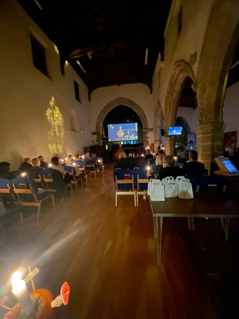 As the lights were dimmed, everyone’s candle was lit from the Advent candle, symbolising that Jesus is the light in the darkness and reminding us of our call to pass that light on to one another.