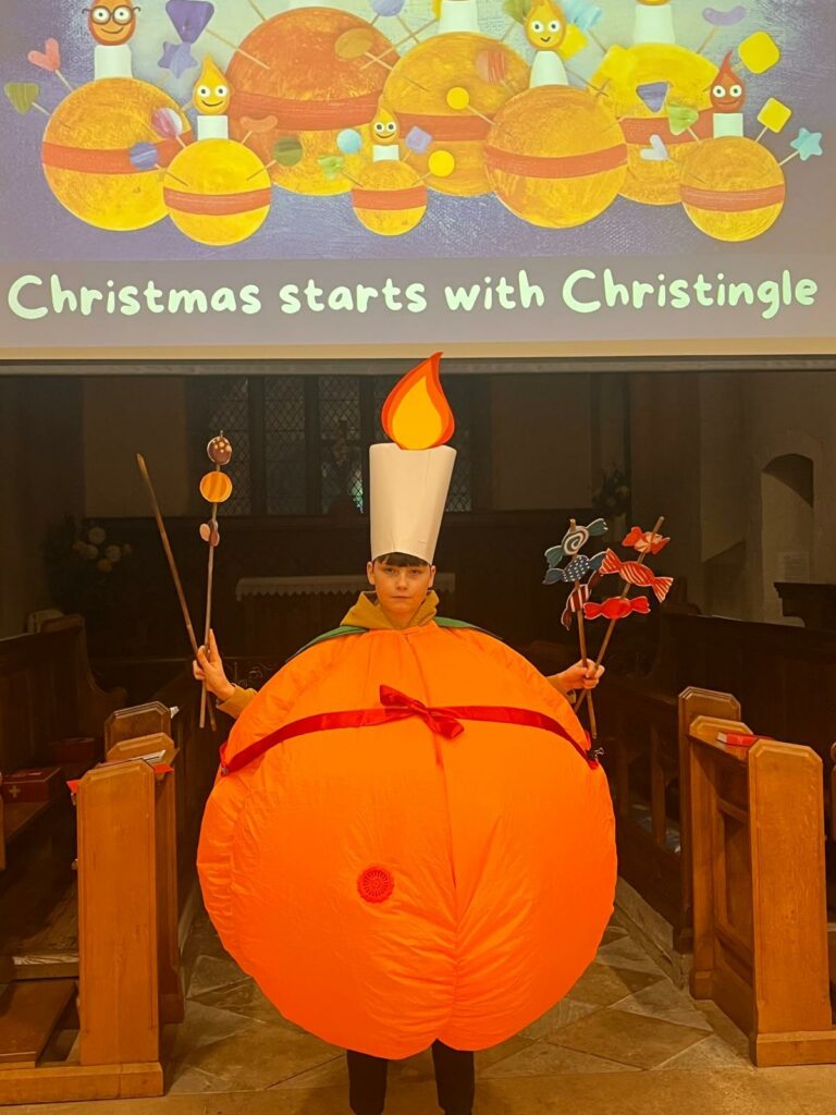 Last Sunday afternoon, St Mary’s East Leake celebrated Christingle with a wonderful mix of regular churchgoers and newcomers. Each person received a bag containing all the ingredients needed to make their own Christingle. The lively, interactive service featured several young people from the church, including one dressed as a giant Christingle!
