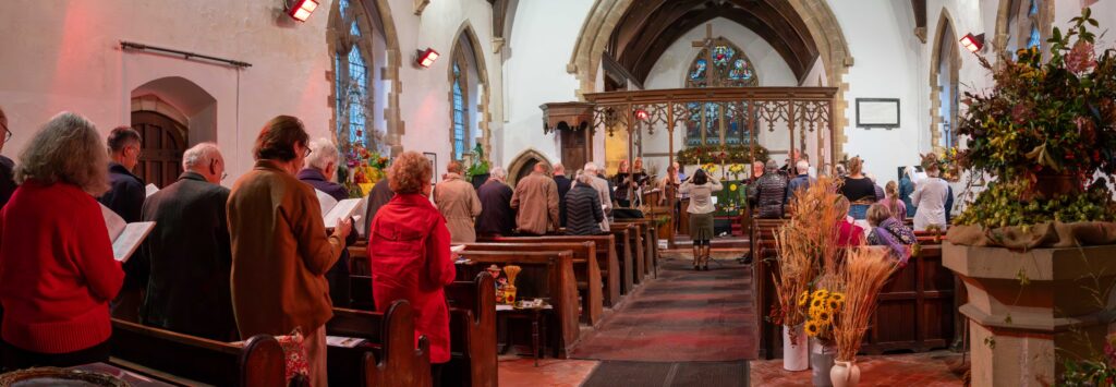 Instead of the usual 9am service, the festive evening celebration was held at 6pm where the Eakring Community Choir sang beautifully, performing ‘I Sing Because I’m Happy‘. The service was followed by a joyful Harvest Supper in the Cator Hall.