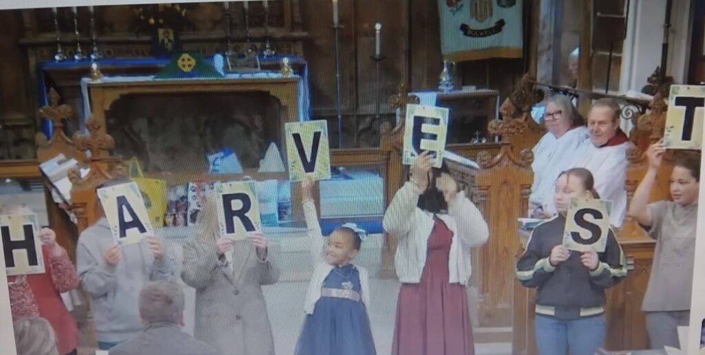 St Mary the Virgin & All Souls’ in Bulwell was packed this week with pupils, members of staff, parents and carers as it hosted Crabtree Farm Primary School’s Harvest Festival Service. Everyone enjoyed singing popular songs like ‘Big Red Combine Harvester’ and the ‘Fluffy Cauliflower Song’, and Fr Andrew and the parents literally spelt out (with letters) what HARVEST stands for…
