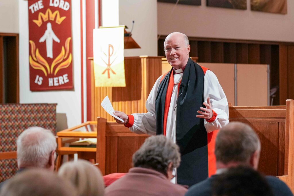 Bishop Paul preached on the story of The Road to Emmaus from Luke 24:13–35, reflecting on the moments when Jesus opens the eyes of his followers to recognise him. He spoke of the unfolding story of God’s work through his church from its earliest days to the present, noting the special blessing of having several previous vicars of St Mark’s in attendance, and of a church full of many gifted and prayerful people.