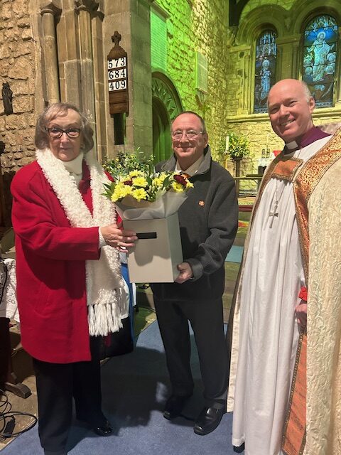 At the close of the service, Councillor Challinor presented Bishop Paul with a miner’s lamp and also presented a lamp to the Chairman of Bassetlaw, Tony Eaton, whose father had been a Bevin Boy. The church received a piece of coal taken on the final day of production and from the last coal train to leave Harworth Colliery. Flowers were also presented to Rita Bowman, who worked with the welfare and union during her 25 and a half years in the coal industry.