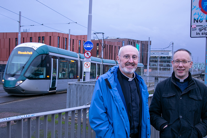 Recognising that the appointment serves the diocese as well as the Minster, Dr Evans travelled with Archdeacon of Nottingham, the Venerable Phil Williams, to visit St Mary’s in the Lace Market where he was welcomed by Revd Dr James Saunders, Vicar of St Mary’s, and Revd Jo Tatum, Nottingham Workplace Chaplain and Area Dean of Nottingham North. James took them on a short walk around the Lace Market area of the city.